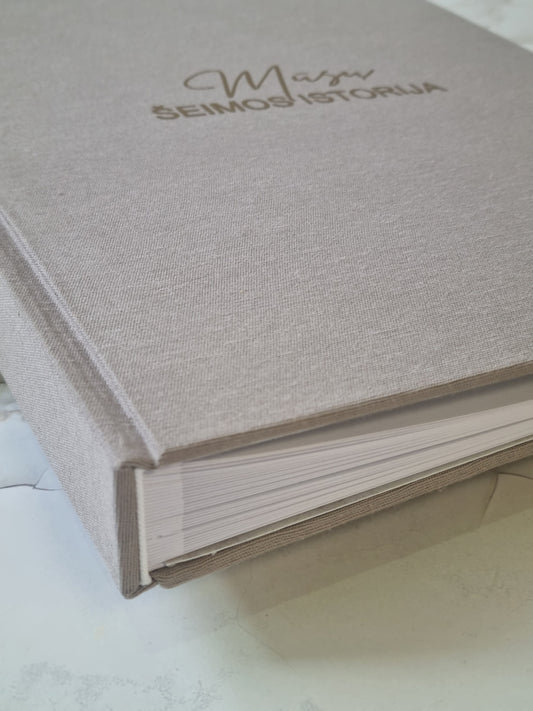 Rankų darbo albumas nuotraukoms "Mūsų šeimos istorija"