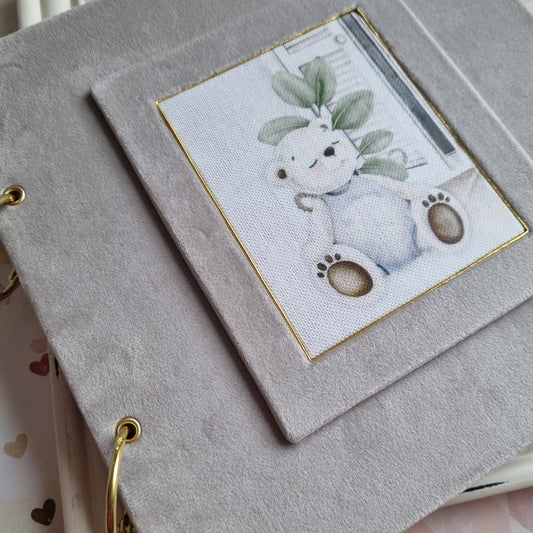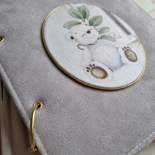 Rankų darbo kūdikio knyga berniukui "Drambliukas"