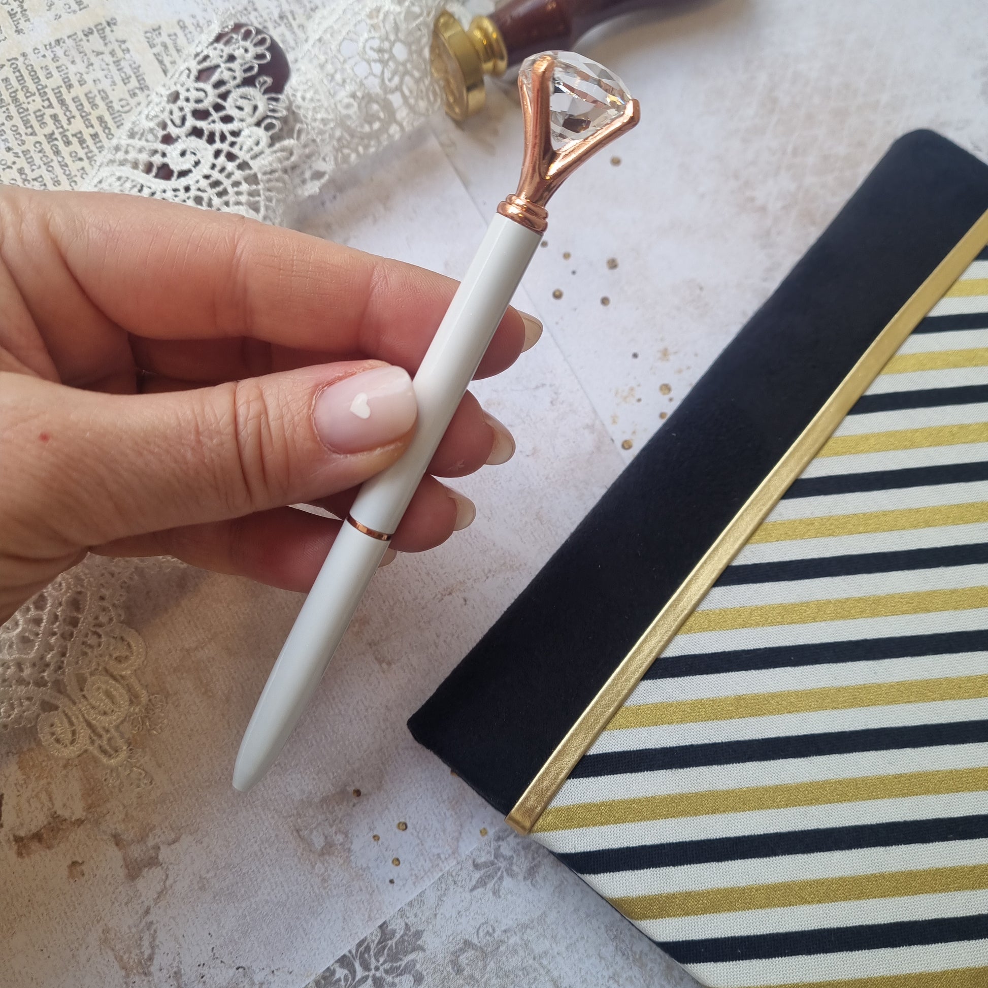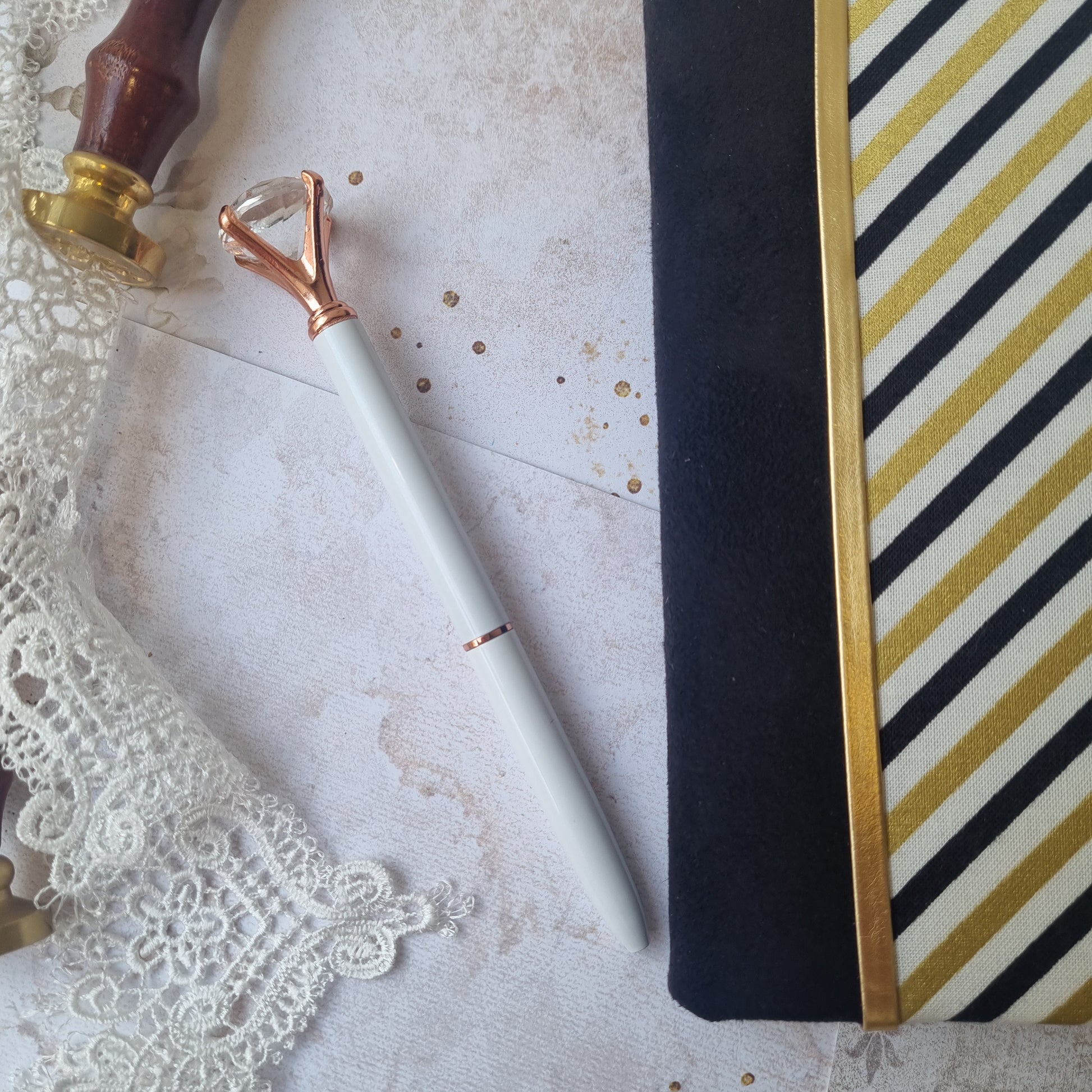 Metalinis, sunkus, kokybiškas rašiklis. Baltas korpusas ir rožinio aukso detalės atrodo išties prabangiai ir žaismingai. Labai tinka prie vestuvių linkėjimų knygų. Taip pat galima dovanoti kartu su pieštukine.
