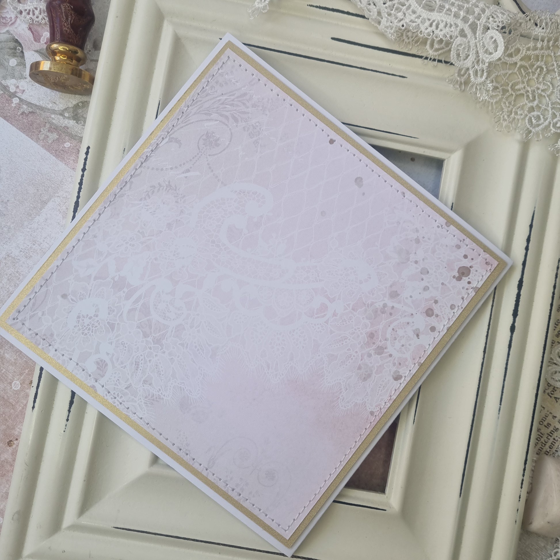 Atvirutė labai subtili, neperkrauta detalėmis, popieriaus sluoksniai apsiūti, kad būtų jaučiamos įvairios faktūros. Dailus raštuotas popierius suteikia atvirutei pavasariško žavesio.