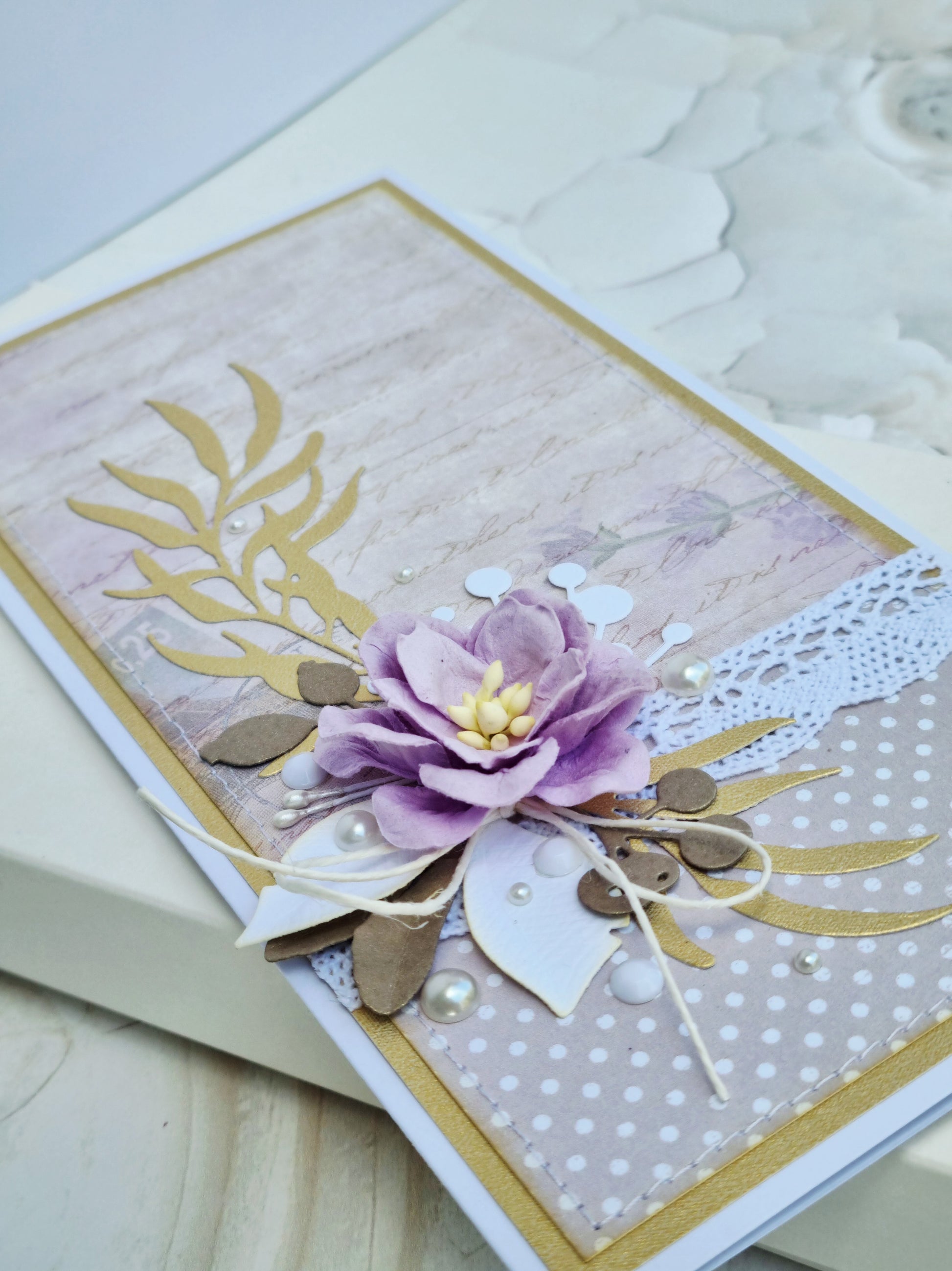 Ieškantiems išskirtinio ir unikalaus būdo pasveikinti, ši rankų darbo atvirutė - puikus pasirinkimas. Pagaminta iš aukštos kokybės popieriaus, panaudojant daug smulkių dekoro elementų, papuošta nėrinių juostele.