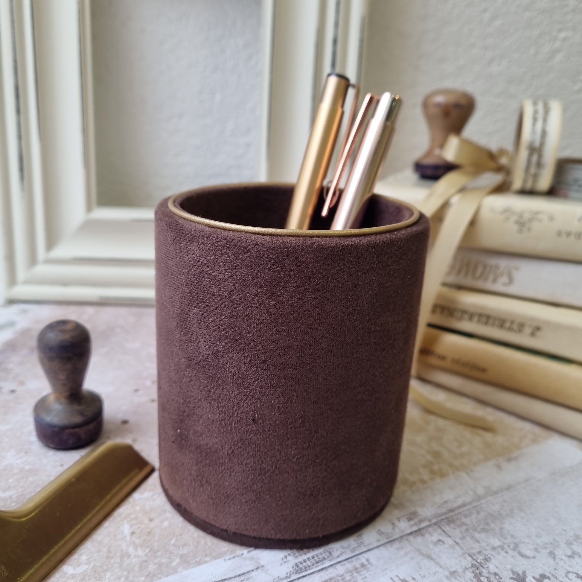 Pieštukinėje galima laikyti ne tik rašiklius ar pieštukus. Ją pritaikysite ir vonios kambaryje ar ant kosmetinio stalelio ir sudėsite į ją makiažo šepetėlius. Tinka tiek rankdarbių mylėtojams, tiek solidžiam darbo kambariui tiek buduarui.