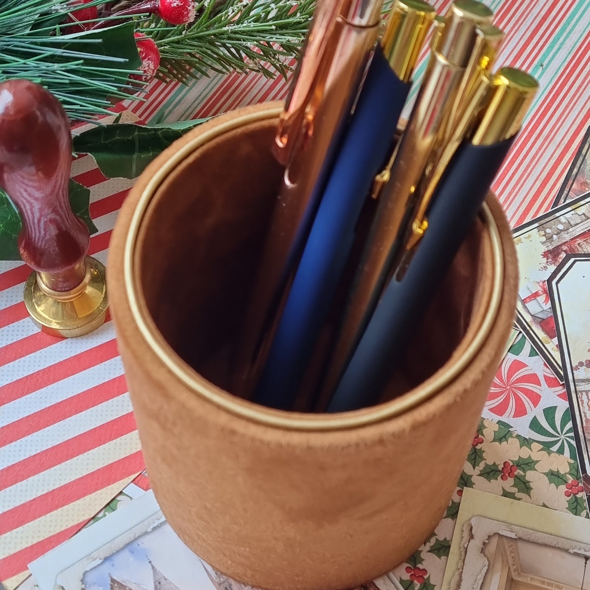 Pieštukinėje galima laikyti ne tik rašiklius ar pieštukus. Ją pritaikysite ir vonios kambaryje ar ant kosmetinio stalelio ir sudėsite į ją makiažo šepetėlius. Tinka tiek rankdarbių mylėtojams, tiek solidžiam darbo kambariui tiek buduarui.