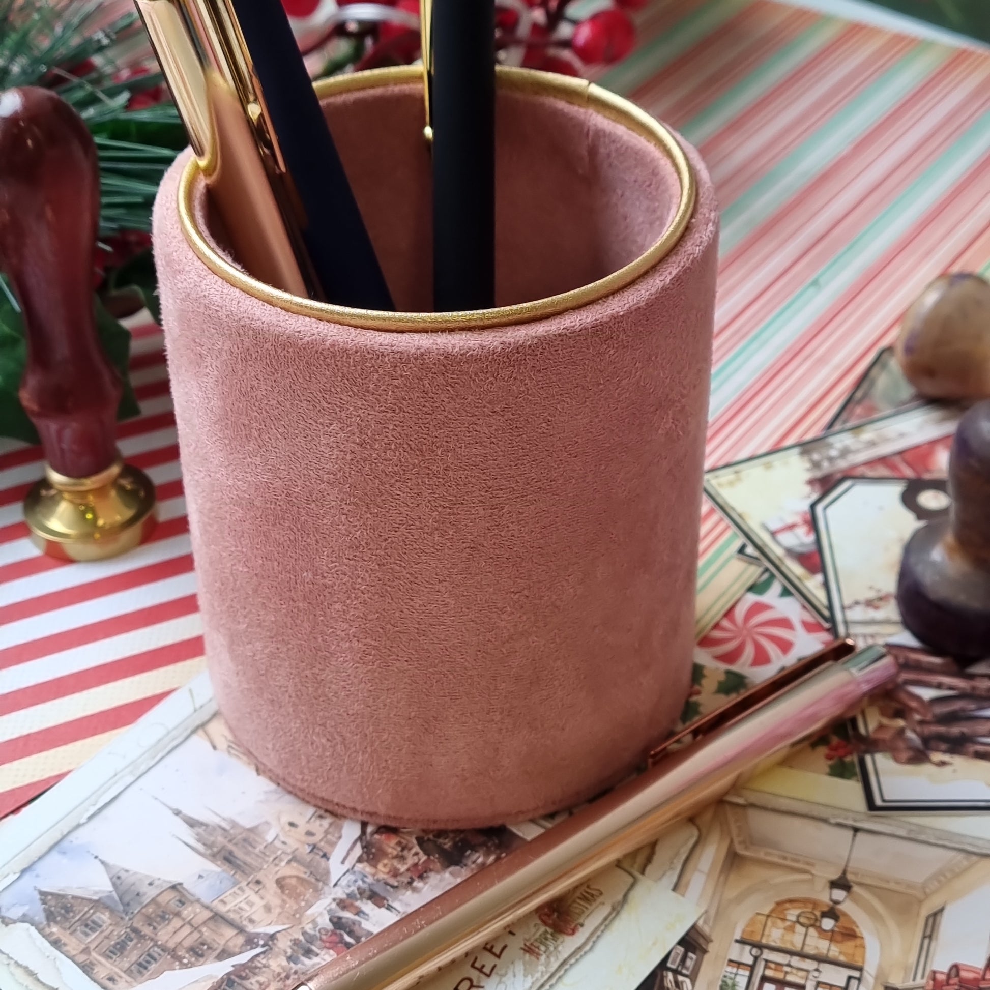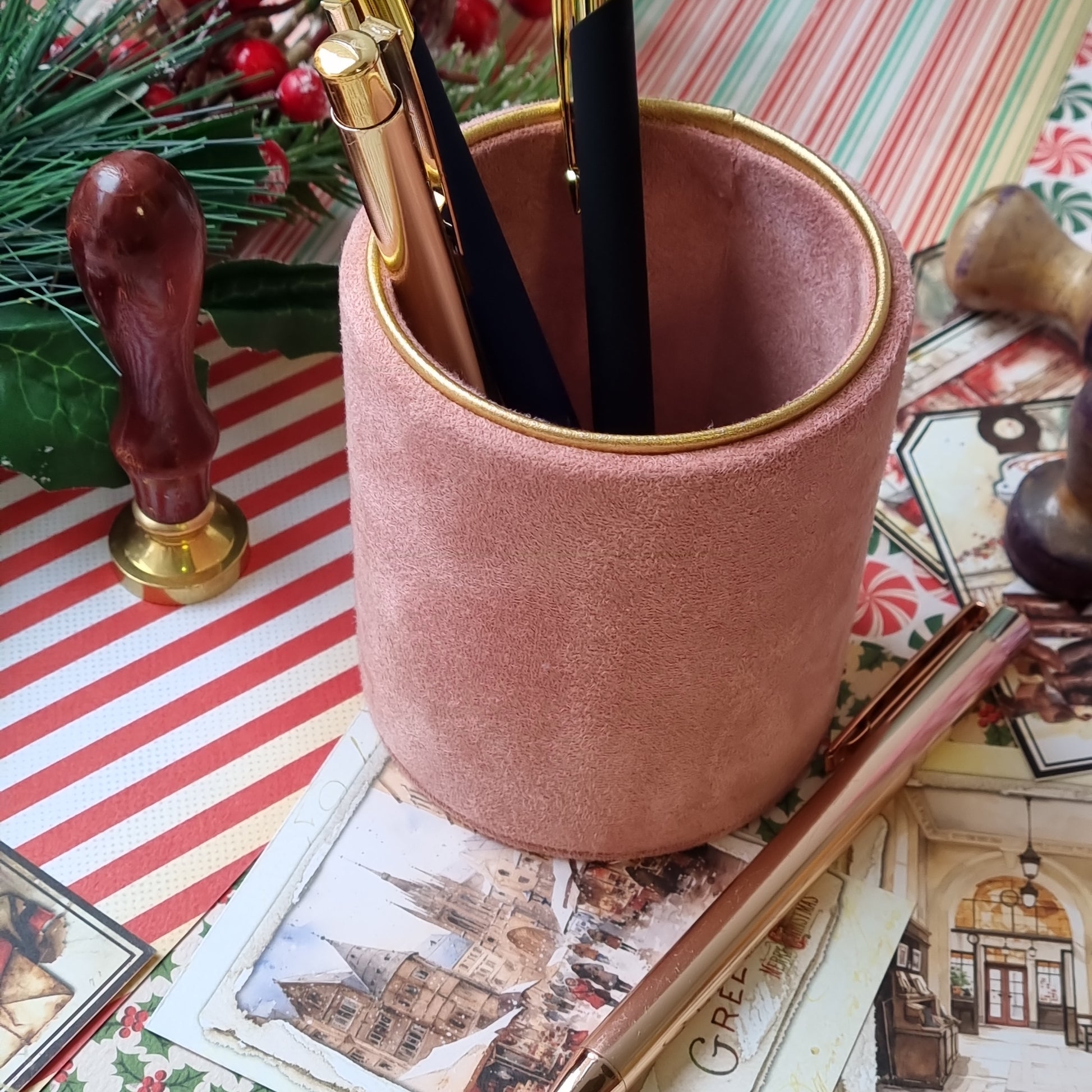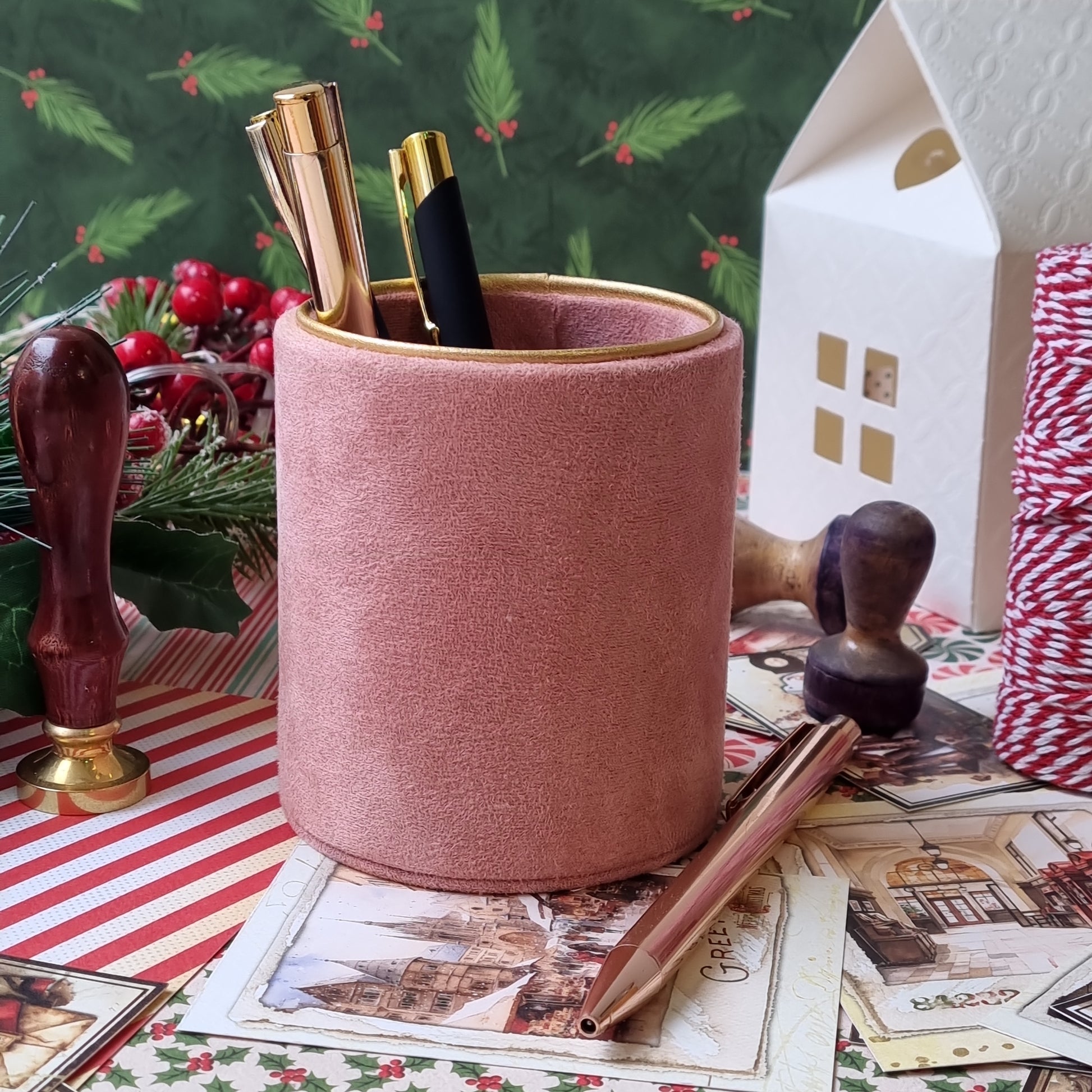 Pieštukinėje galima laikyti ne tik rašiklius ar pieštukus. Ją pritaikysite ir vonios kambaryje ar ant kosmetinio stalelio ir sudėsite į ją makiažo šepetėlius. Tinka tiek rankdarbių mylėtojams, tiek solidžiam darbo kambariui tiek buduarui.