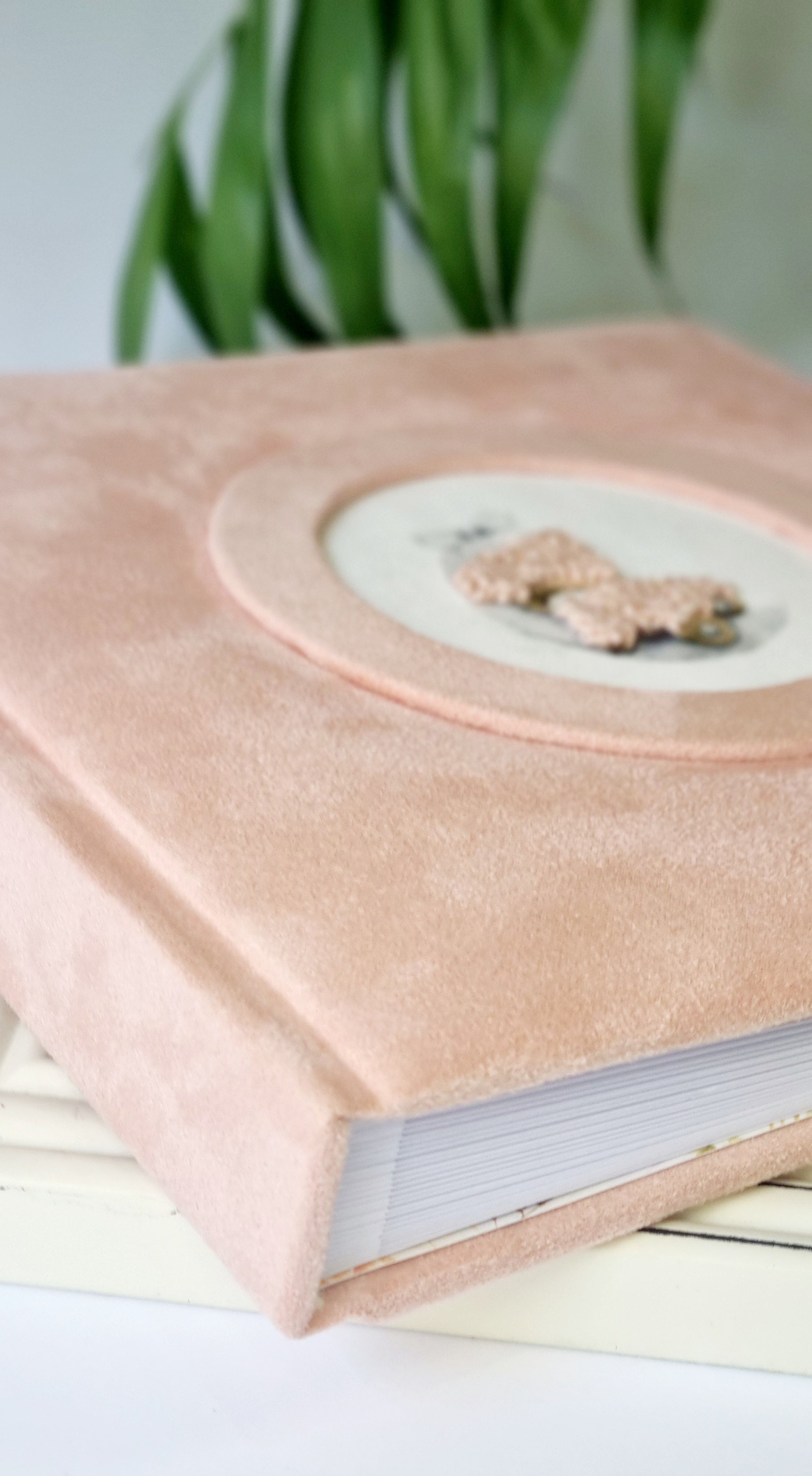 Albumas tinka ir linkėjimams rašyti ir nuotraukoms klijuoti. Naudojamas itin aukštos kokybės austriškas, satino švelnumo popierius.