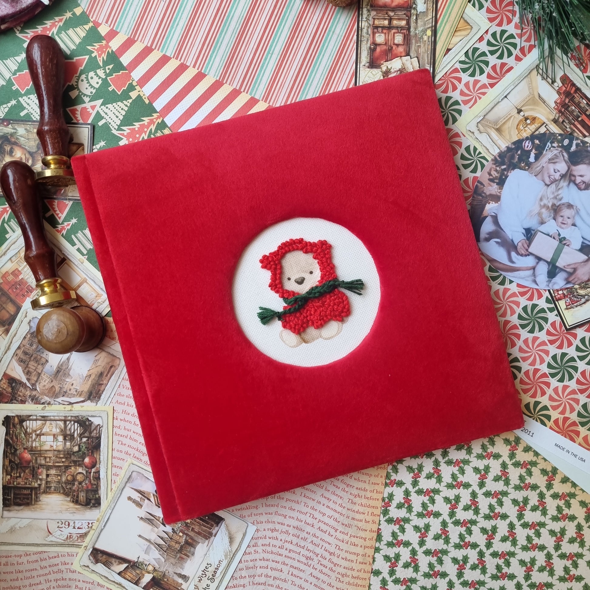 Itin Kalėdiškas, jaukus ir mielas rankų darbo albumas gražiausioms vaikučio nuotraukoms.