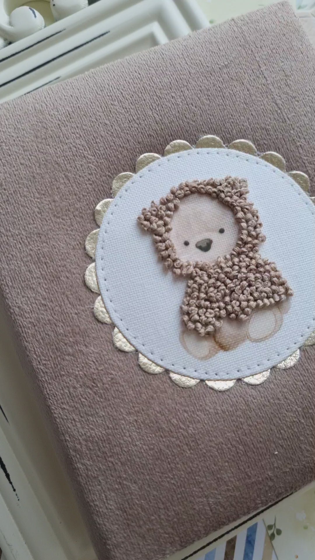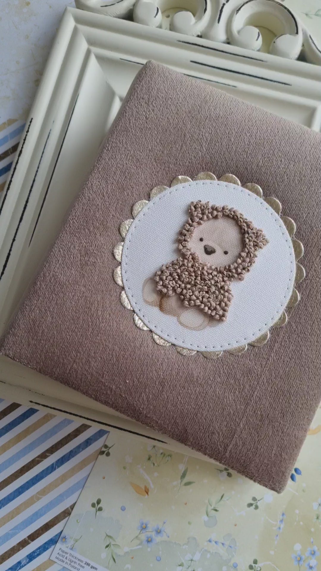 Viršelis dengtas veliūriniu audiniu, papuoštas rankomis siuvinėtu Pliuškiu.