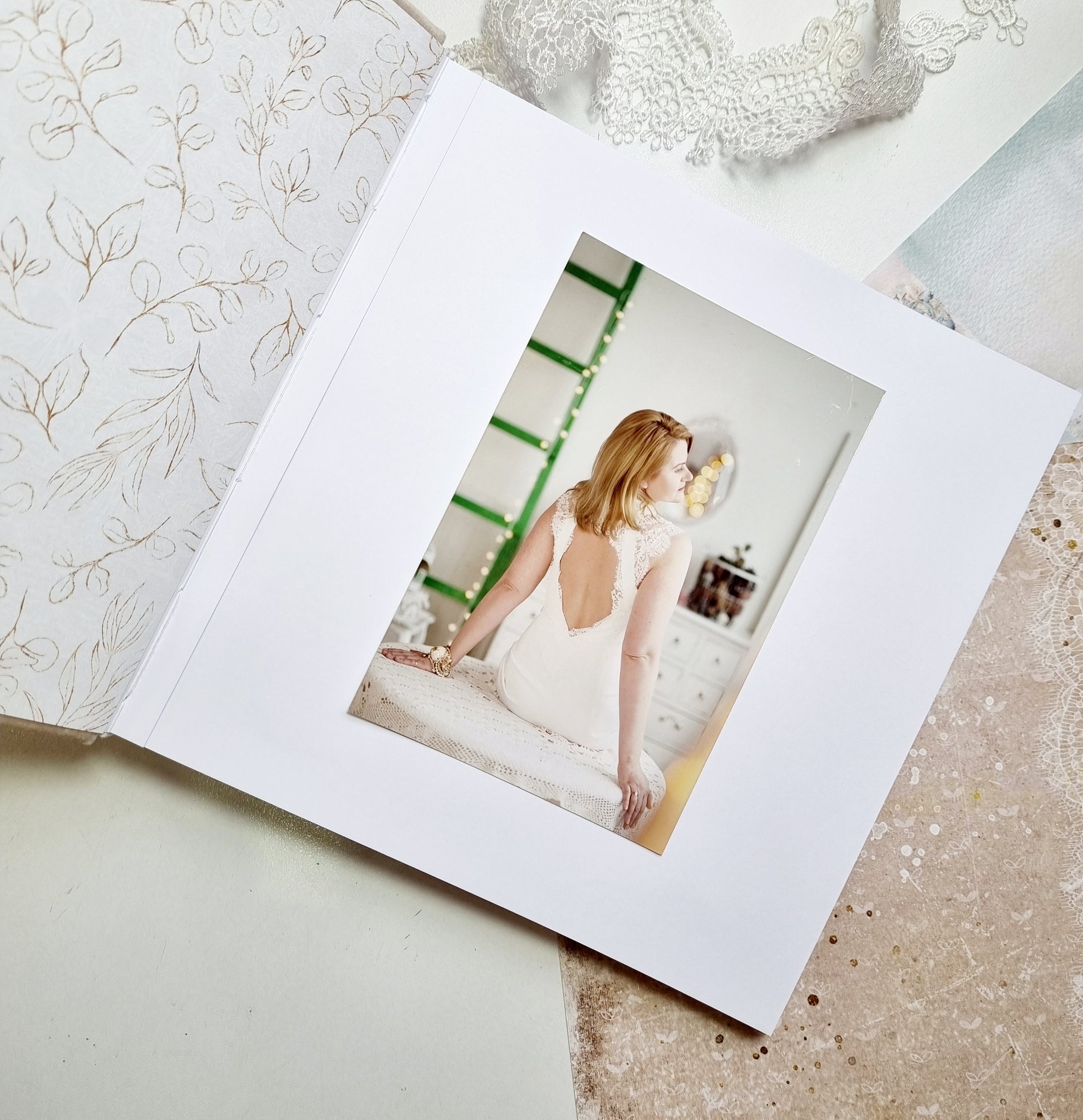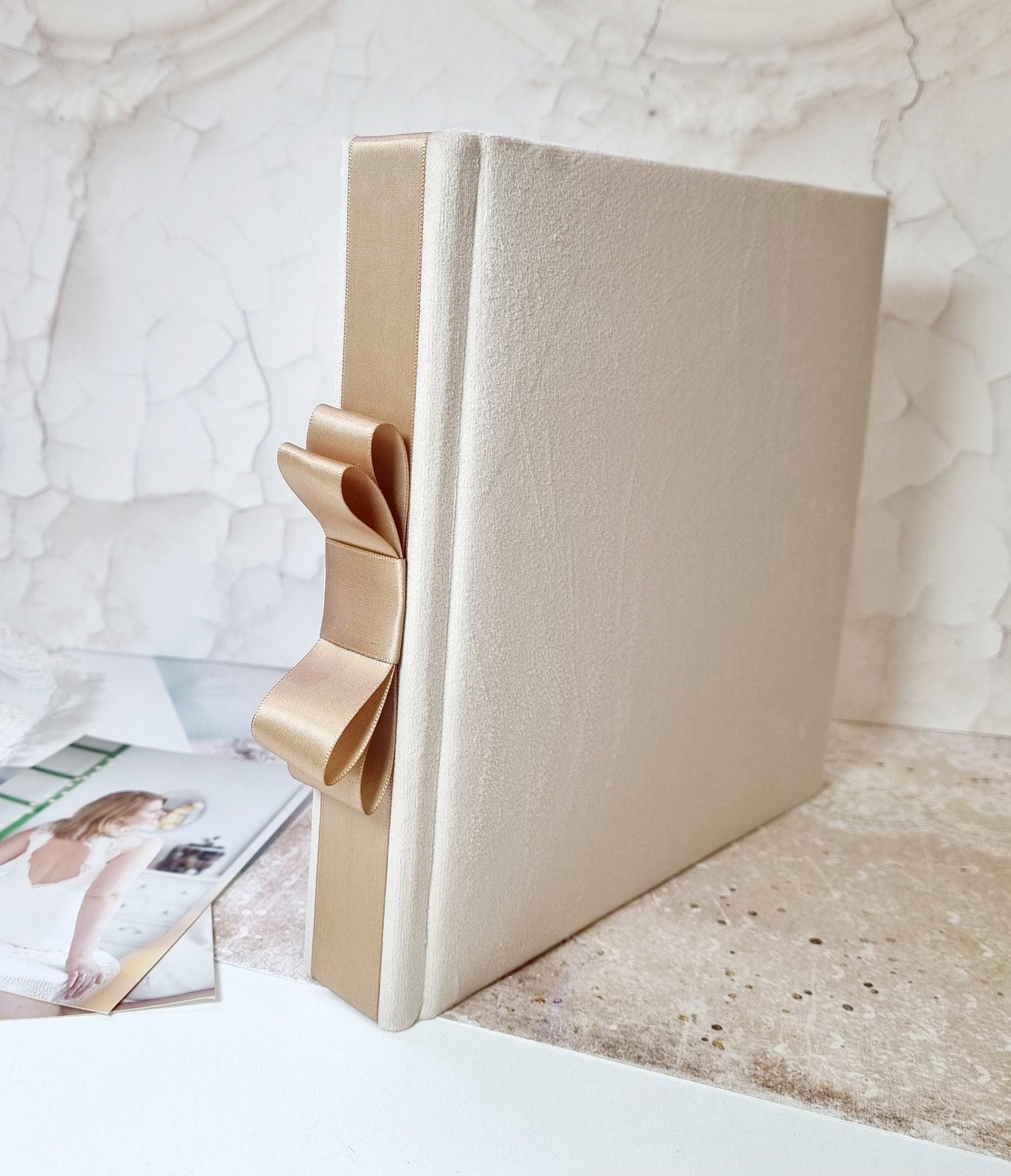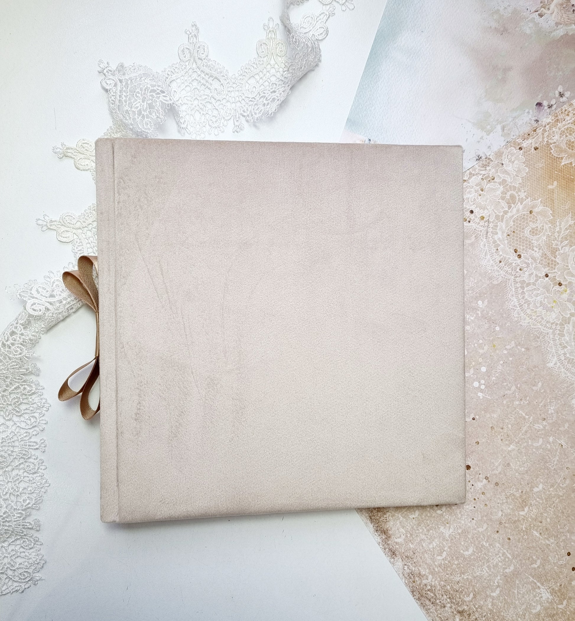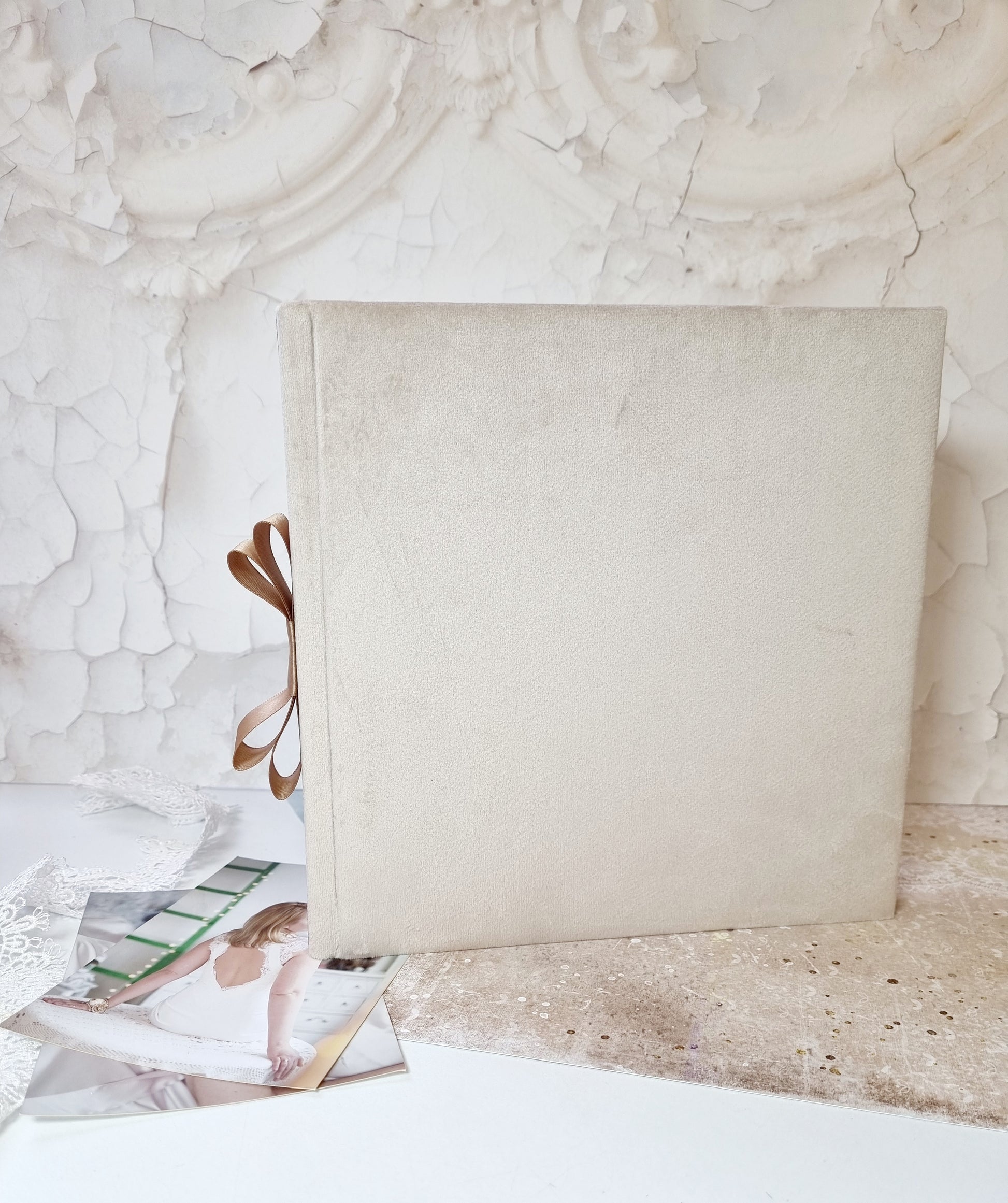Dydis 21x21 cm, viduje 30 baltų lapų. Talpina 60 nuotraukų. Taip pat galima naudoti ir linkėjimams rašyti.