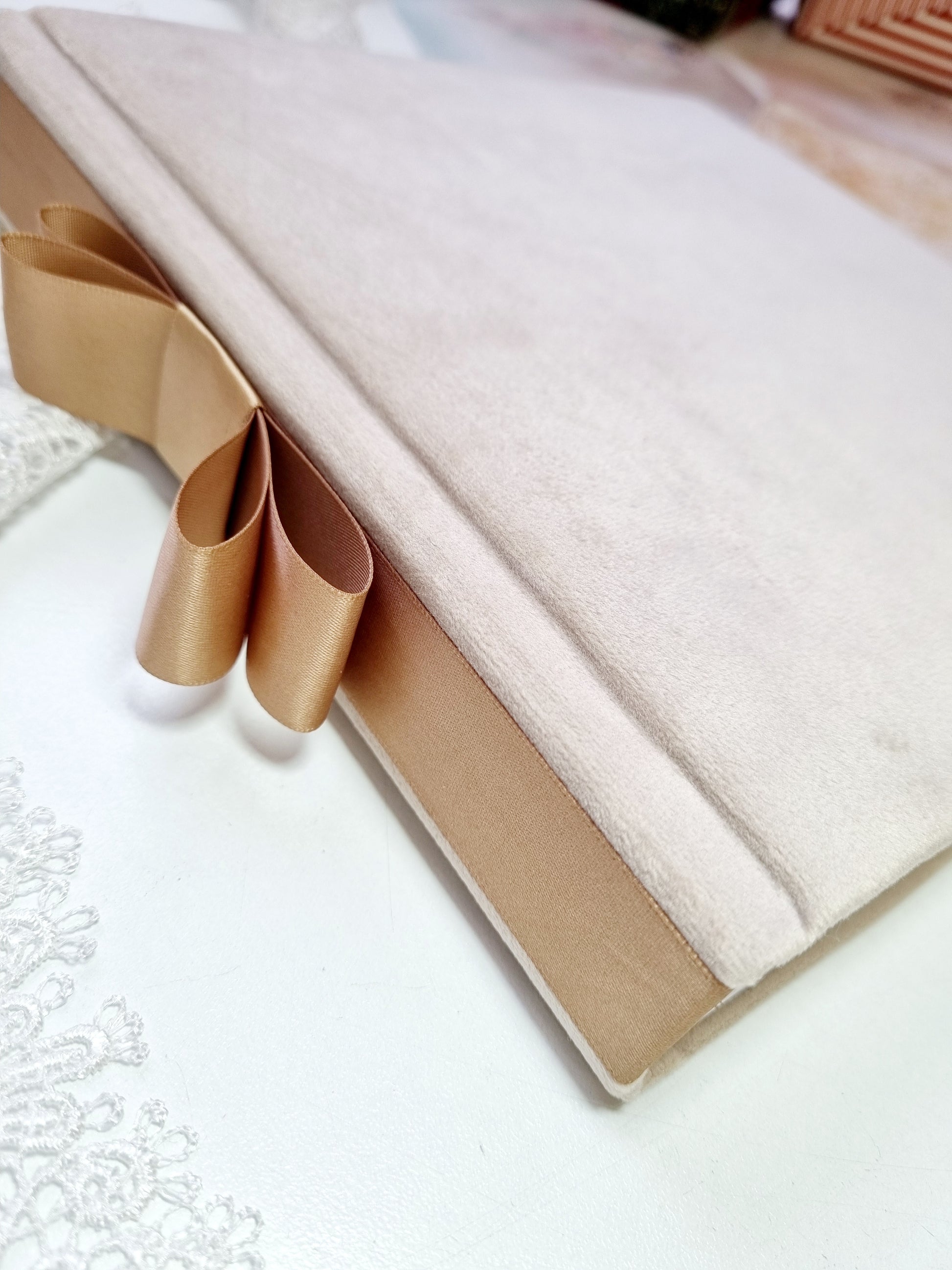 Albumo viršelis dengtas švelniu smėlio spalvos veliūru.