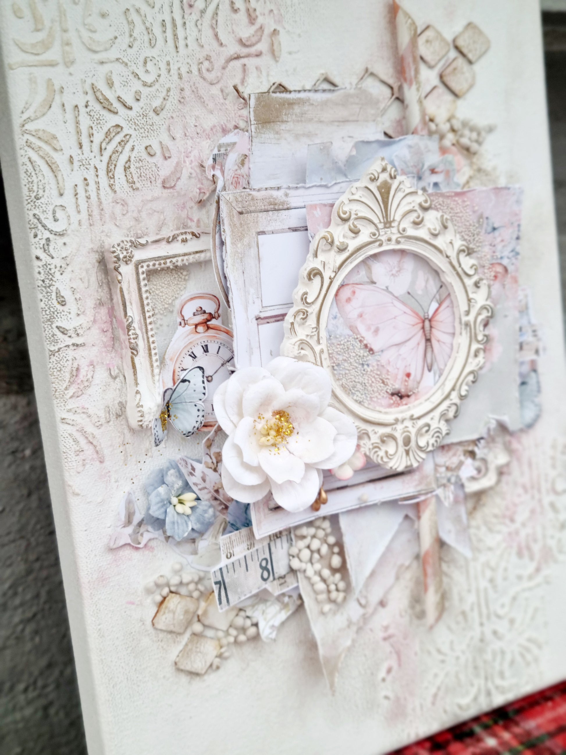 Paveikslas sukurtas naudojant įvairias mixed media technikas.