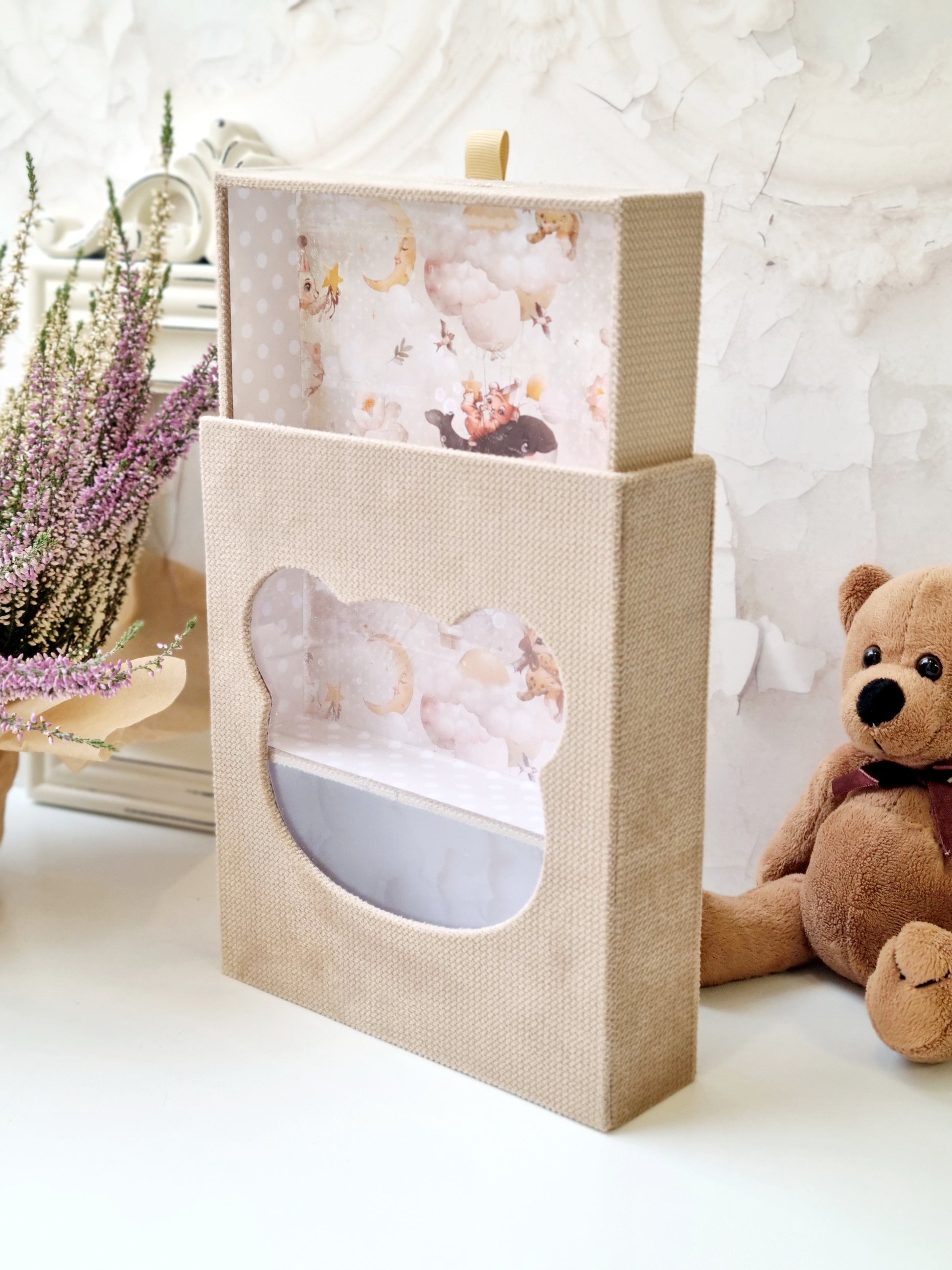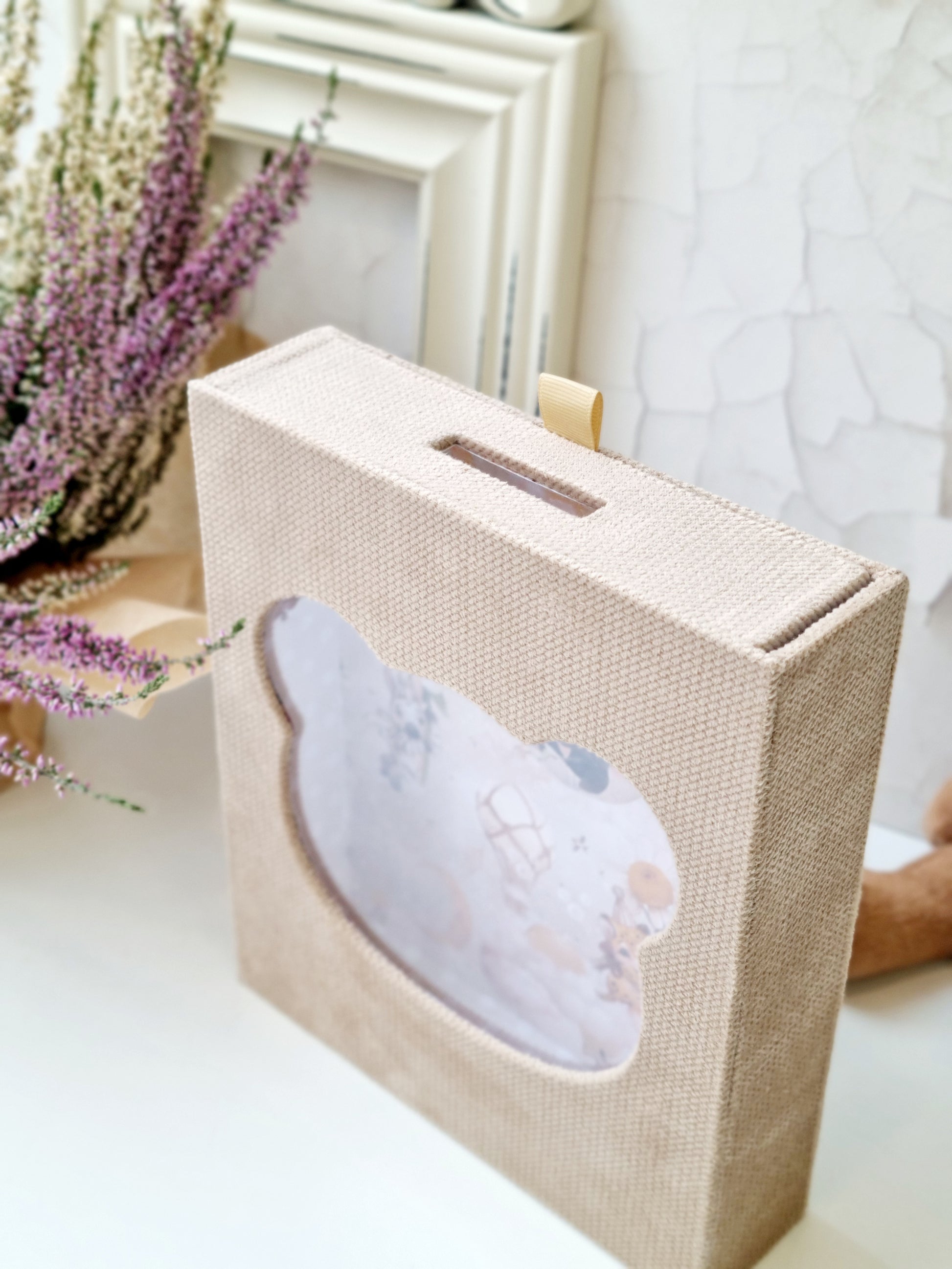 Taupyklės ypatingos. Jos dengtos švelniu audiniu, su skaidriu langeliu. Ir, kas svarbiausia, jų nereikia išardyti tam, kad išimti pinigus. Užtenka ištraukti stalčiuką. Tad taupyklė jums tarnaus labai ilgai. Na o uždėjus vardą ar kitokį užrašą bus itin asmeniška, unikali dovana.