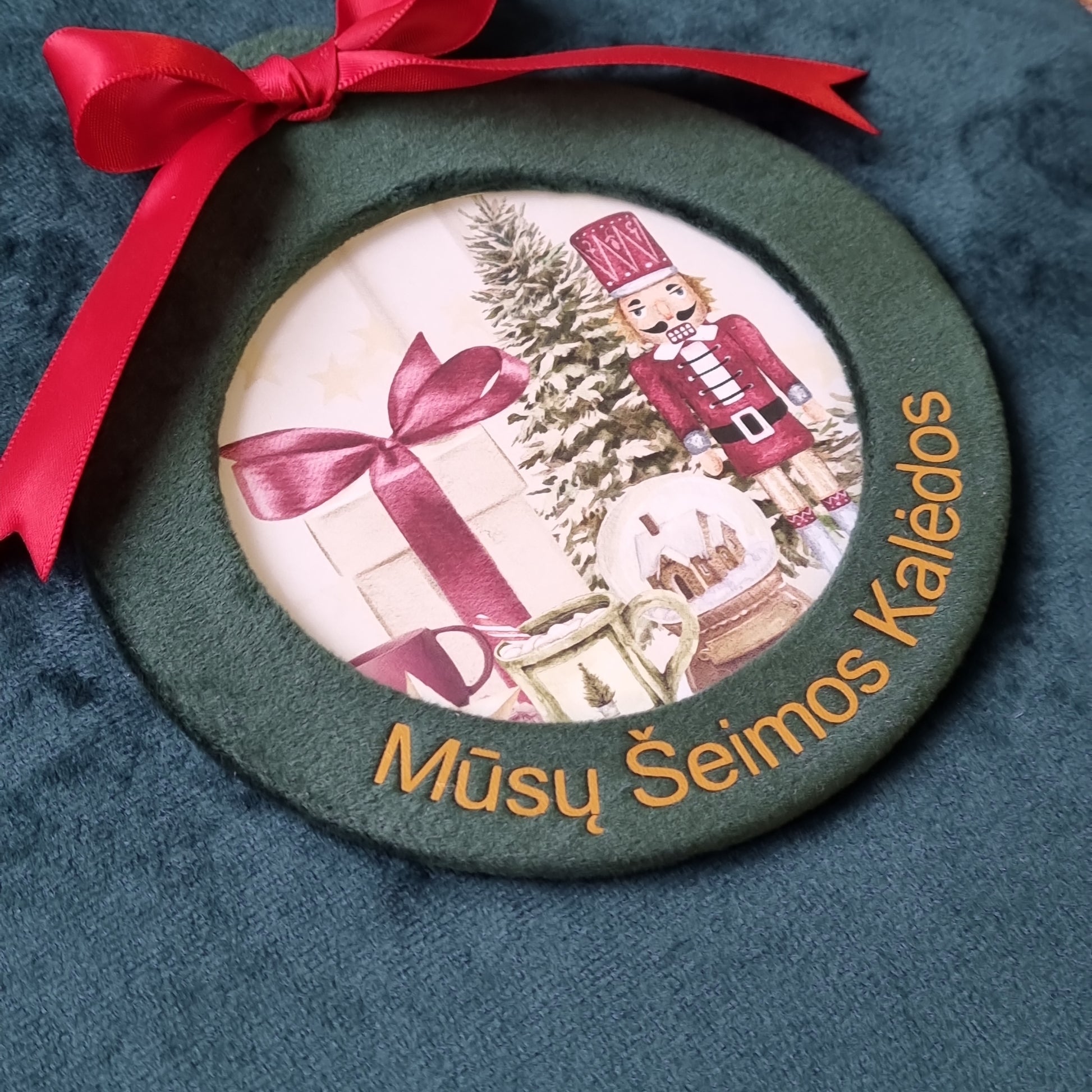 Jeigu gerai įsižiūrėjote-tai pamatėte, kad dekoras yra kalėdinio žaisliuko formos. Tad ir jūsų nuotrauka bus įrėminta tame žaisliuke.